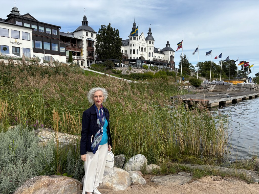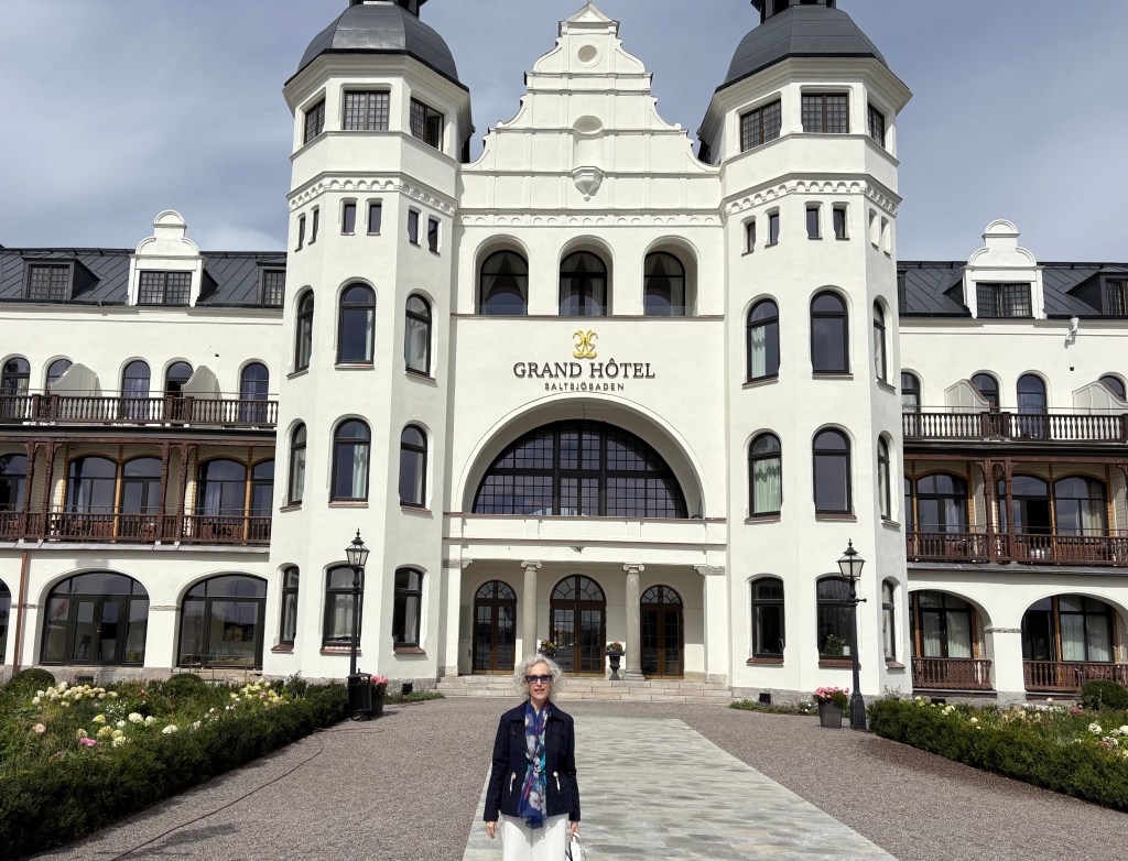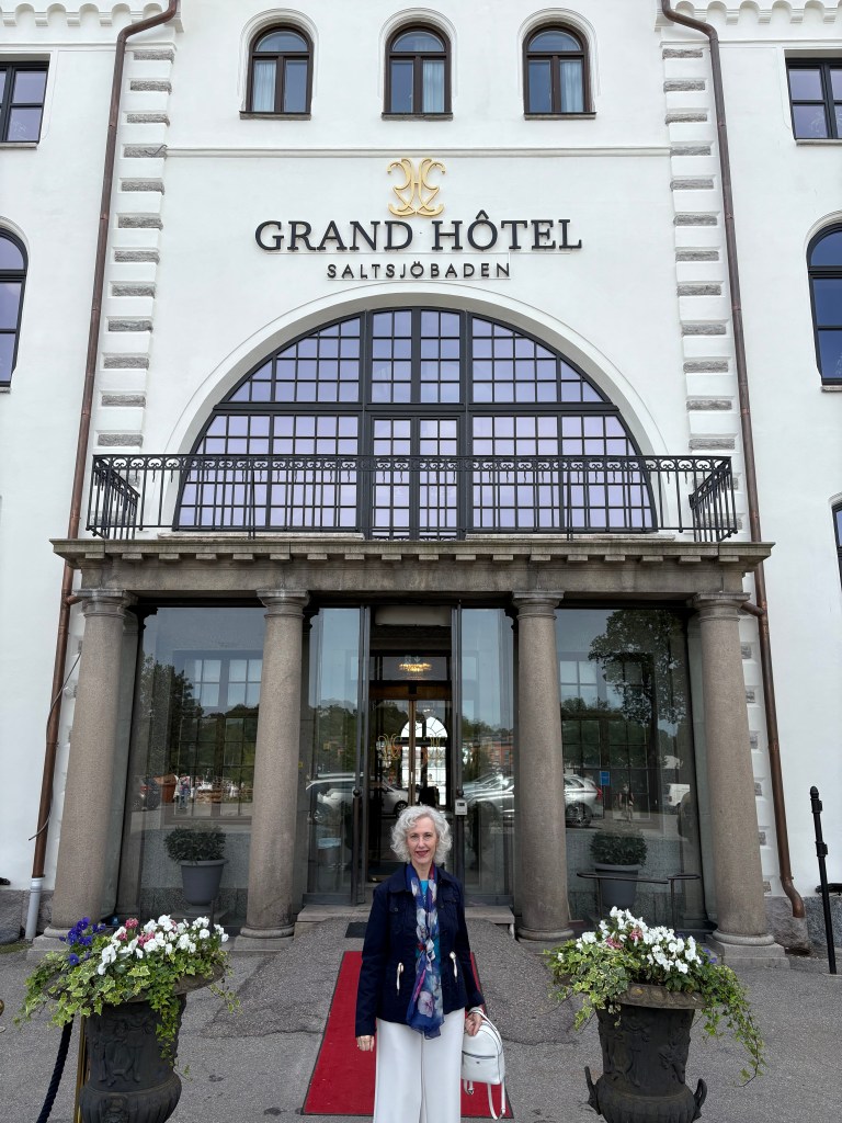 Se me ocurrió preguntar a dos jóvenes de ese museíto, donde había pocos visitantes, sobre la estatua del Grand Hotel. Eran dos chicas rusas encantadoras, una de ellas estudiante de historia etnográfica. Al contarles que en la novela se menciona la estatua de Saltjöbaden, buscaron en internet y la encontraron. Información en sueco que me tradujeron. ¡Sorpresa! Un director de banco llamado Wallenberg, a finales del siglo XIX y después de un viaje a Mónaco, decidió crear una “Riviera sueca” con un balneario a orillas del Báltico en las inmediaciones de Estocolmo (una media hora en coche). El nombre Saltjöbaden significa, precisamente, baños en agua salada. Y ese era el hotel original, primero de la cadena, del que se habla en la novela. Al día siguiente encargué un taxi para poder llegar, sin saber muy bien si me dejarían entrar a husmear.